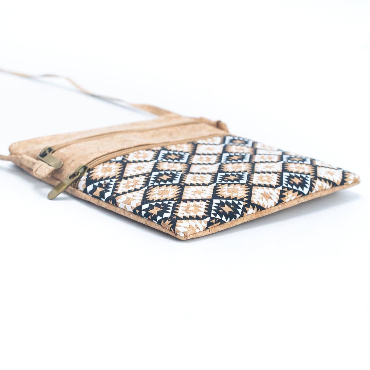 Структурирана чанта през рамо от корк, има джоб с цип на гърба за ежедневните ви принадлежности. Отпред красива цветна шарка, допълнена отгоре с рустик корк в натурален цвят, както и на гърба. Тази пленителна чанта е перфектен избор за вашия вегански начин на живот, тъй като е изработена от корк, добиван от дъбови дървета по органичен и устойчив начин.