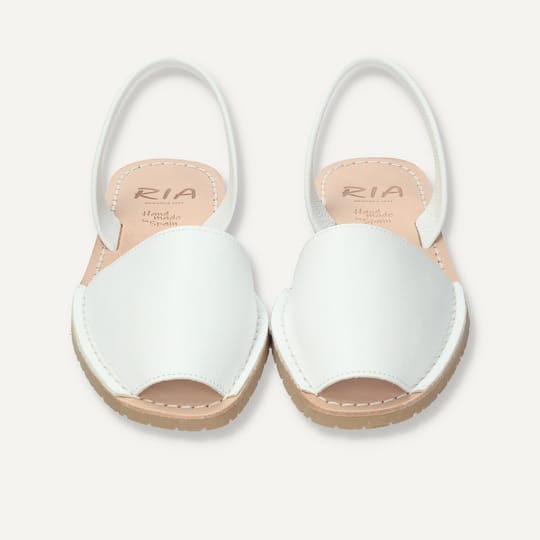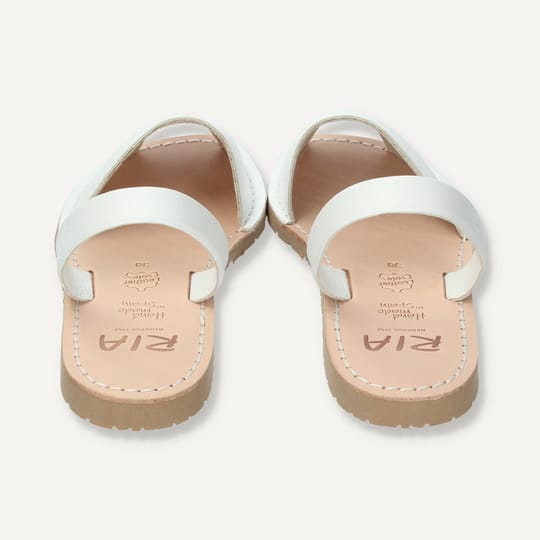 Бели дамски сандали изработени от естествена кожа. Вярна на традиционния стил на abarca, карамелената подметка има текстура, имитираща тази на протектора на гумите. Изработени от висококачествени материали, тези сандали са идеални както за ежедневна употреба, така и за специални поводи.