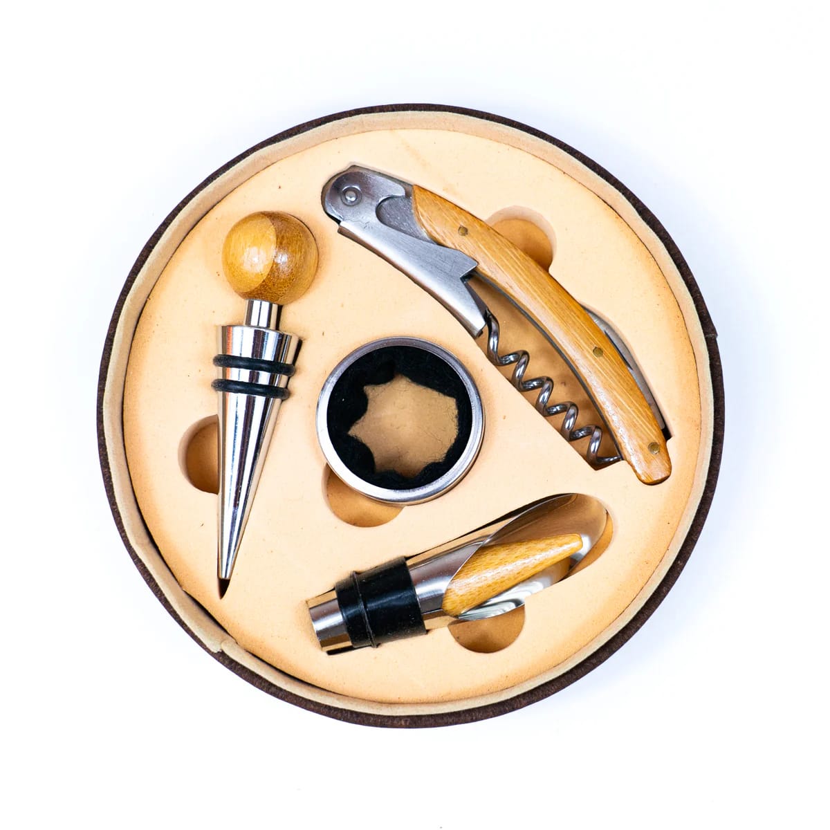 Представяме ви нашия комплект аксесоари за вино в коркова кутия - 4 части! Този изискан комплект аксесоари за вино е проектиран да повиши вашето изживяване при пиене на вино и да добави нотка на елегантност на вашите събирания. С височина от 15 сантиметра и ширина от 4 сантиметра, тази компакта, но елегантна коркова кутия съдържа четири основни аксесоара за вино, които всеки винолюбител трябва да има: Тирбушон за вино: нашият висококачествен тирбушон за вино лесно отстранява тапа от любимите ви бутилки с вино, позволявайки ви да се наслаждавате на съдържанието с лекота. Ергономичният й дизайн осигурява удобно захващане и гладка работа. Изливаща система за вино: изливащата система за вино, включена в комплекта, улеснява контролирането на изливането без разливане на вино. Страната ѝ е внимателно проектирана, за да осигури равномерен поток на виното, предотвратявайки капки и петна по покривката Тапа за вино: Запазете ароматите и вкусовете на недоизпитото си вино с включената в комплекта тапа за вино. Изработена от издръжливи материали, тя осигурява херметично уплътнение, за да запази виното ви свежо за по-дълго. Декантер за вино: Наливането на вино става лесно с включеният декантер за вино в комплекта. Неговият прецизен дизайн позволява гладък и контролиране поток, осигурявайки лесно наливане без разливане. Изработени с внимание към детайла и използвайки премиум материали, тези аксесоари за вино комбинират функционалност с естетическа привлекателност. Всяка част е проектирана да подобри вашето изживяване при пиенето на вино и да го направи по-приятно. Компактният размер на кутията за тапи я прави лесна за съхранение и пренасяне. Независимо дали организирате вечеря, отивате на пикник или посещавате събитие за дегустация на вино, този комплект е перфектен спътник за всеки любител на виното в движение. Комплект аксесоари за вино Cork Box - 4 части не е само практично допълнение към вашата винена колекция, но също така е отличен подарък.