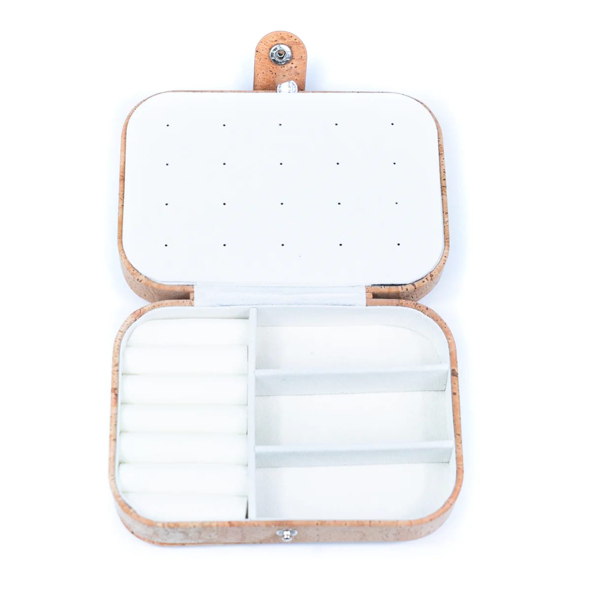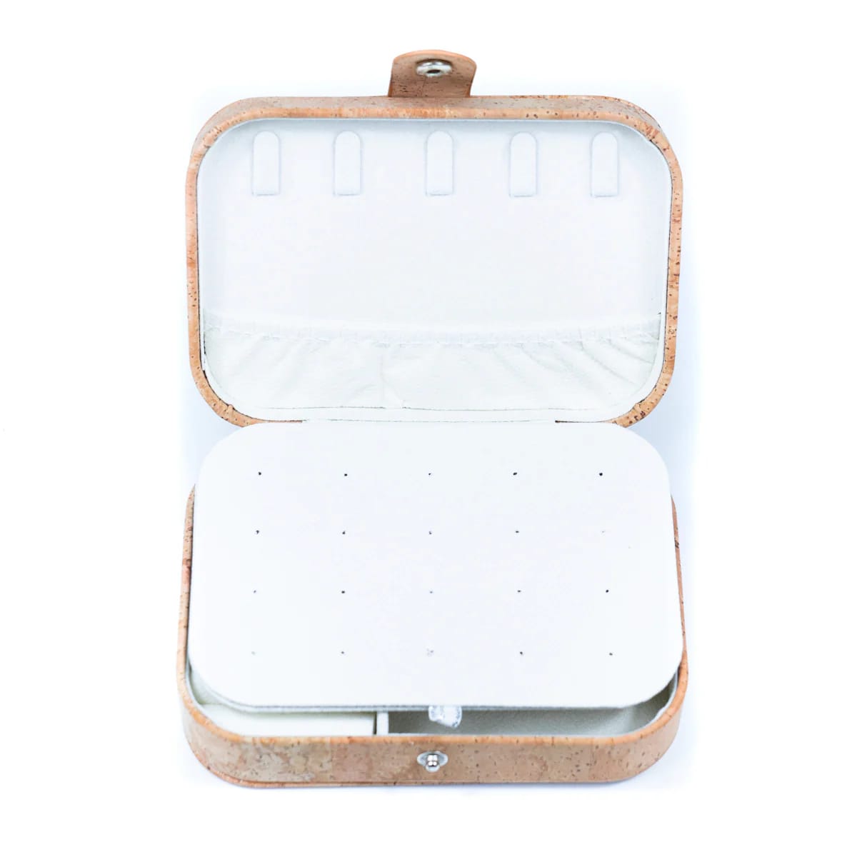 Кутия за бижута от естествен корк с правоъгълна форма - крайното решение за организиране и защита на вашите обици, колиета, пръстени, гривни и др. Тази кутия с разполага с удължен дизайн и два отделни слоя, за да побере почти всичките ви лични бижута.Налична в два изискани стила от корк: златен корк и цветен корк, нашата кутия за бижута съчетава екологичност с елегантност, за да отговаря на вашите индивидуални предпочитания.